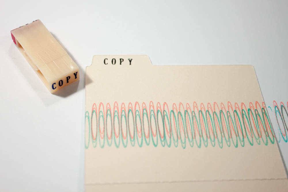 Using small alphabet stamps, stamp “COPY” in black ink on the folder’s tab.