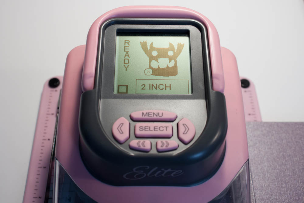 I created three different die-cuts of monsters, each 2 inches high, from the “Toil and Trouble” design card on my Making Memories Slice Elite. I then adhered black cardstock underneath the mouth of each monster.