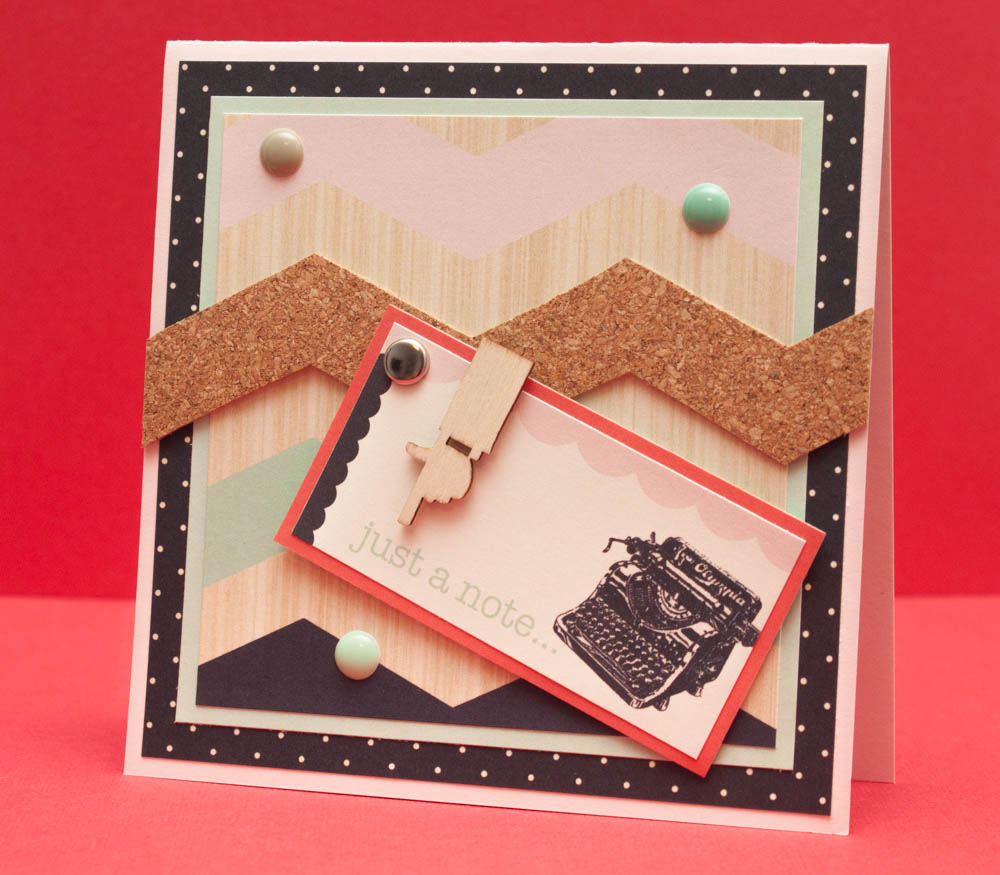 There have been some cool materials entering the paper-craft market, such as wood veneer and chalkboard-like cardstock. I came across something I hadn’t seen before: cork. Not wine corks – although, there could be some fun 3-D crafting with those – but pieces made out of a thin layer of cork.
